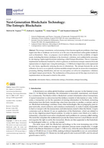 Storage, transmission and processing of data become a significant problem when large digital data files or databases are involved, as in the case of decentralized online global databases such as blockchain. Here we propose a novel method that allows the scalability of digital assets, including blockchain databases in the download, validation and confidentiality process, by developing a lightweight blockchain technology called Entropic Blockchain. This is a computer-implemented mathematical method to generate an information-entropic numerical barcode representation of a digital asset. Using this technique, a 1 - 2 Mb block of digital data can be represented by a few bytes reducing significantly the size of a blockchain. The entropic barcode file can be utilized on its own, or as an optically machine-readable entropic barcode, for secure data transmission, processing, labelling, identification, one-way encryption and compression, validation, and digital tamper-proof check. The mathematics of this process and all the steps involved in its implementation are discussed in detail in this article.