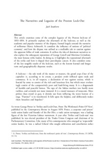 This article examines some of the complex legacies of the lock-out. It primarily explores the aftermath of the lock-out, as well as the academic and popular memory of the dispute, framed largely around the narrative of millowner Henry Ashworth. It considers the influence of notions of ‘political economy’, and how the dispute was utilised as a malleable tale to caution against the apparent follies of trade unionism. It utilises the idea of dominant narratives to also explore the subsequent reputations of George Cowell and Mortimer Grimshaw, the most famous strike leaders. In doing so, it highlights the reputational aftermath of the strike and how it shaped their postdispute careers. It also considers some of the less tangible results of the lock-out, such as the lessons learned and longer term and geographically disparate results of the dispute.