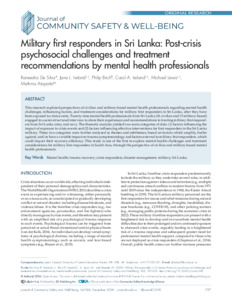 Military First Responders in Sri Lanka: Post-Crisis Psychosocial Challenges and Treatment Recommendations by Mental Health Professionals.