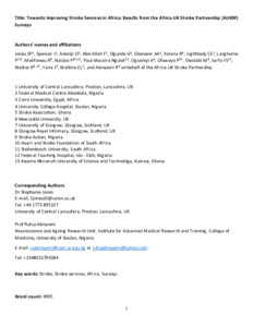 Towards Improving Stroke Services in Africa: Results from the Africa-UK Stroke Partnership [AUKSP] Surveys.