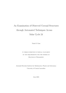 Gass, Daniel Gordon (2023) An Examination of Observed Coronal Structures through Automated Techniques Across Solar Cycle 24. Doctoral thesis, University of Central Lancashire.