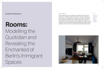 Within historiography, design and architecture production, scale models can reveal worlds of proposition, speculation and fiction. This abstract, however, situates the model as a tool for observation, documentation and engagement with The Quotidian, and its transformation into The Enchanted. Model-making as a slow, durational method of artistic research, has the potential to elevate the existence of people and place often marginalised by wider society, and manifest a deep level of participation in their lives. “Rooms” was an artistic and research project undertaken as part of an artistic residency at the Urban Nation Museum in Berlin between October 2021 and March 2022. It looked at the Romanian immigrant community inhabiting the city, the spaces they occupy and appropriate, and the objects that they surround themselves with. These instances – a Romanian shop and two domestic spaces - were drawn, surveyed, documented and then painstakingly recreated through 1:20 paper models, which were presented as part of a group exhibition.
