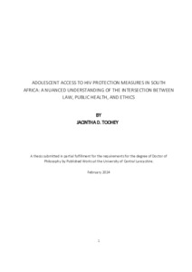 Toohey, Jacintha D. (2024) ADOLESCENT ACCESS TO HIV PROTECTION MEASURES IN SOUTH AFRICA: A NUANCED UNDERSTANDING OF THE INTERSECTION BETWEEN LAW, PUBLIC HEALTH, AND ETHICS. Doctoral thesis, University of Central Lancashire.