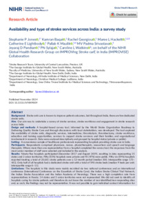 Aim: Our aim was to undertake a survey of stroke services, stroke workforce, and engagement in stroke research across India.
