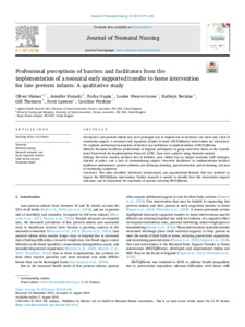 Professional perceptions of barriers and facilitators from the implementation of a neonatal early supported transfer to home intervention for late preterm infants: a qualitative study.