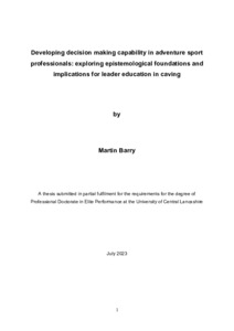 Barry, Martin (2024) Developing decision making capability in adventure sport professionals: exploring epistemological foundations and implications for leader education in caving. Doctoral thesis, University of Central Lancashire.