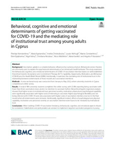 Behavioral, cognitive and emotional determinants of getting vaccinated for COVID-19 and the mediating role of institutional trust among young adults in Cyprus