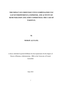 Patel, Mohsin Ali (2024) THE IMPACT ON CHIEF EXECUTIVE COMPENSATION PAY GAP OF INDEPENDENCE, EXPERTISE, AND ACTIVITY OF REMUNERATION AND AUDIT COMMITTEES: THE CASE OF PAKISTAN. Doctoral thesis, University of Central Lancashire.