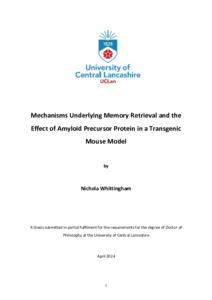 Whittingham, Nichola (2024) Mechanisms Underlying Memory Retrieval and the Effect of Amyloid Precursor Protein in a Transgenic Mouse Model. Doctoral thesis, University of Central Lancashire.