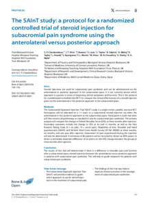 Charalambous, Charalambos, Hirst, John T., Kwaees, Tariq, Lane, Suzanne, Taylor, Clare, Solanki, Nilesh, Maley, Alex, Taylor, Rebecca, Howell, Laura et al (2024) The SAInT study: a protocol for a randomized controlled trial of steroid injection for subacromial pain syndrome using the anterolateral versus posterior approach. Bone & Joint Open, 5 (9). pp. 729-735.