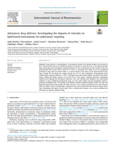 Mathew Thevarkattil, Anila, Yousaf, Sakib, Houacine, Chahinez, Khan, Wasiq, Bnyan, Ruba, Elhissi, Abdelbary and Khan, Iftikhar (2024) Anticancer drug delivery: Investigating the impacts of viscosity on lipid-based formulations for pulmonary targeting. International Journal of Pharmaceutics, 664 . p. 124591. ISSN 0378-5173