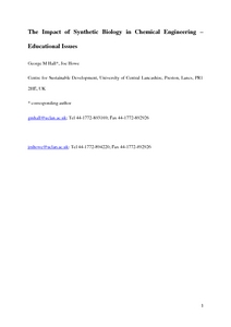 Hall, George M. and Howe, Joe (2012) The impact of synthetic biology in chemical engineering - Educational issues. Education for Chemical Engineers, 7 (2). e51-e55. ISSN 1749-7728