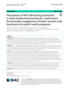 Perceptions of HIV self-testing promotion in black barbershop businesses: implications for equitable engagement of black-owned small businesses for public health programs.