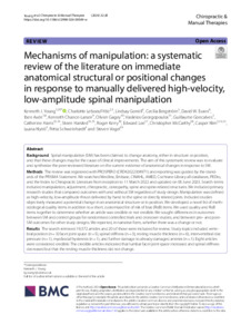 Mechanisms of manipulation: a systematic review of the literature on immediate anatomical structural or positional changes in response to manually delivered high-velocity, low-amplitude spinal manipulation.