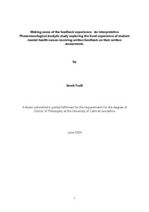 Traill, Sarah Louise (2024) Making sense of the feedback experience: An Interpretative Phenomenological Analytic study exploring the lived experience of student mental health nurses receiving written feedback on their written assessments. Doctoral thesis, University of Central Lancashire.