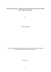 Andreou, Stavroula (2024) ‘Minor-Attracted People’: Attitudes toward people attracted to prepubescent children and the impact on professionals. Masters thesis, University of Central Lancashire.