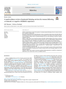 A rapid evidence review of postnatal listening services for women following a traumatic or negative childbirth experience.