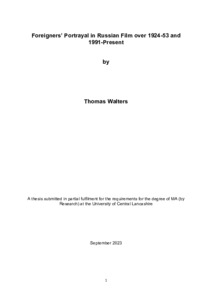Walters, Thomas (2023) Foreigners’ Portrayal in Russian Film over 1924-53 and 1991-Present. Masters thesis, University of Central Lancashire.