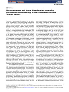 Recent progress and future directions for expanding gastrointestinal endoscopy in low‐ and middle‐income African nations.