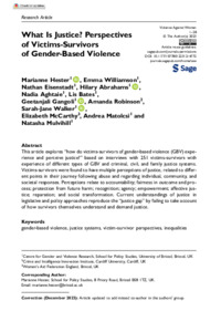 This article explores “how do victims-survivors of gender-based violence (GBV) experience and perceive justice?” based on interviews with 251 victims-survivors with experience of different types of GBV and criminal, civil, and family justice systems. Victims-survivors were found to have multiple perceptions of justice, related to different points in their journey following abuse and regarding individual, community, and societal responses. Perceptions relate to accountability; fairness in outcome and process; protection from future harm; recognition; agency; empowerment; affective justice; reparation; and social transformation. Current understandings of justice in legislative and policy approaches reproduce the “justice gap” by failing to take account of how survivors themselves understand and demand justice.