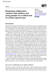 Deepening collaborative research with children and young people: A co-edited and co-written special issue.