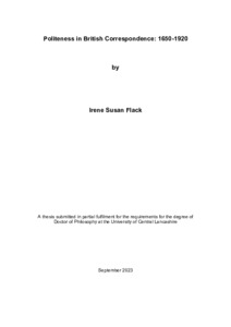 Flack, Irene Susan (2024) Politeness in British Correspondence: 1650-1920. Doctoral thesis, University of Central Lancashire.