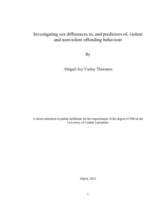 Thornton, Abigail J V (2012) Investigating sex differences in, and predictors of, violent and nonviolent offending behaviour. Doctoral thesis, University of Central Lancashire.