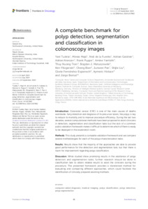 A complete benchmark for polyp detection, segmentation and classification in colonoscopy images.