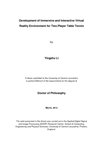 Li, Yingzhu (2012) Development of Immersive and Interactive Virtual Reality Environment for Two-Player Table Tennis. Doctoral thesis, University of Central Lancashire.