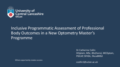 Inclusive Programmatic Assessment of Professional Body Outcomes in a New Optometry Master’s Programme.
