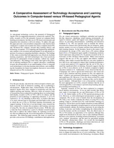 A Comparative Assessment of Technology Acceptance and Learning Outcomes in Computer-based versus VR-based Pedagogical Agents.