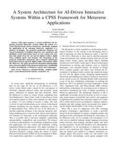 A System Architecture for AI-Driven Interactive Systems Within a CPSS Framework for Metaverse Applications.