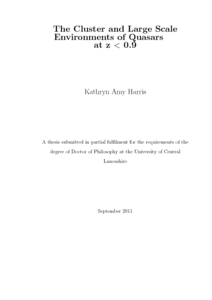 Harris, Kathryn (2011) The Cluster and Large Scale Environments of Quasars at z < 0.9. Doctoral thesis, University of Central Lancashire.