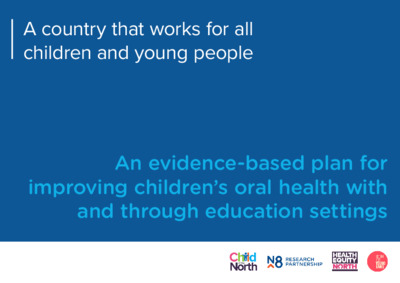 Albadri, Sondos, Balmer, Richard, Bjornstad, Gretchen, Chauhan, Amrit, El Shuwind, Hanin, Forshaw, Eleanor, Giles, Erin, Gkekas, Athanasios, Goodwin, Michaela et al (2024) A country that works for all children and young people: An evidence-based plan for improving children’s oral health with and through education settings. Project Report. N8 Research Partnership.
