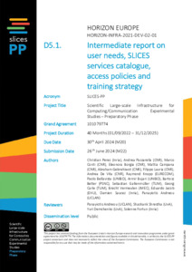 Perez, Christian, Passarella, Andrea, Conti, Marco, Borgia, Eleonora, Campana, Mattia, Gebrehiwot, Abraham, Lauria, Filippo, De Vita, Andrea, Knopp, Raymond et al (2024) D5.1. Intermediate report on user needs, SLICES services catalogue, access policies and training strategy. Project Report. Slices-PP.