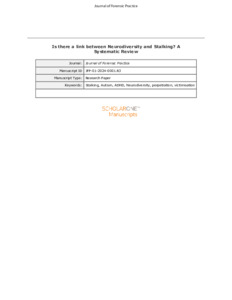 Baciu, Andrei and Worthington, Rachel Elizabeth (2025) Is there a link between neurodiversity and stalking? a systematic review. The Journal of Forensic Practice, 27 (2).