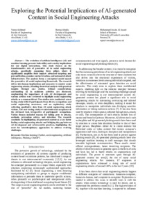 Alahmed, Yazan, Abadla, Reema and Al-Ansari, Mohammed Jassim (2024) Exploring the Potential Implications of AI-generated Content in Social Engineering Attacks. In: 2024 International Conference on Multimedia Computing, Networking and Applications (MCNA). Institute of Electrical and Electronics Engineers (IEEE), pp. 64-73. ISBN 979-8-3503-5474-4