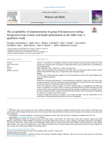 The acceptability of implementation of group B Streptococcus testing: Perspectives from women and health professionals in the GBS3 trial: A qualitative study.