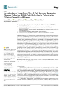 Callery, Emma L., Morais, Camilo L. M., Taylor, Jemma V., Challen, Kirsty and Rowbottom, Anthony (2024) Investigation of Long-Term CD4+ T Cell Receptor Repertoire Changes Following SARS-CoV-2 Infection in Patients with Different Severities of Disease. Diagnostics, 14 (20). p. 2330.