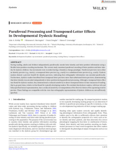 Parafoveal Processing and Transposed-Letter Effects in Developmental Dyslexic Reading.