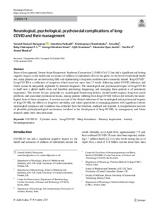 Neurological, psychological, psychosocial complications of long-COVID and their management.