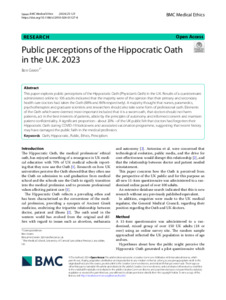 Green, Ben (2024) Public perceptions of the Hippocratic Oath in the U.K. 2023. BMC Medical Ethics, 25 (1).