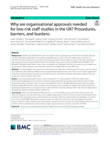 Why are organisational approvals needed for low-risk staff studies in the UK? Procedures, barriers, and burdens.