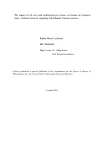 Alrehimi, Radia Ahmed (2024) The impact of oil rents and institutional governance on human development index: evidence from oil exporting Sub-Saharan African countries. Doctoral thesis, University of Central Lancashire.