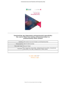 Constructing non-hegemonic entrepreneurial masculinity: the case of Black men doing entrepreneurship in a predominantly white context.
