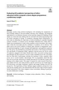 Evaluating UK Academics’ Perspectives of Ethics Education within Computer Science Degree Programmes: a Preliminary Insight.
