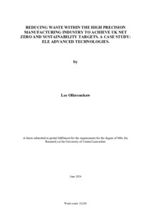 Ollerenshaw, Lee (2024) REDUCING WASTE WITHIN THE HIGH PRECISION MANUFACTURING INDUSTRY TO ACHIEVE UK NET ZERO AND SUSTAINABILITY TARGETS. A CASE STUDY: ELE ADVANCED TECHNOLOGIES. Masters thesis, University of Central Lancashire.