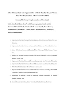 Abbas Torki, Saheb, Roumi, Zahra, Tahavorgar, Atefeh, Salimi, Zahra, Mohammadi, Saeideh, Shekari, Soheila, Saeedirad, Zahra, Amjadi, Arezoo, Mirzaee, Pouya et al (2024) Effect of omega-3 fatty acids supplementation on muscle mass, fat mass, and visceral fat of hemodialysis patients; A randomized clinical trial. Journal of Basic and Clinical Physiology and Pharmacology, 35 (6). pp. 347-352.