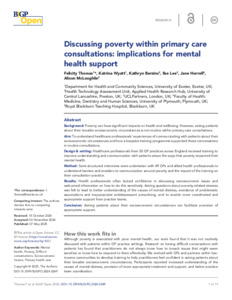 Discussing poverty within primary-care consultations: implications for mental health support.