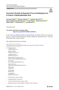 Correction: The Role of Stewards of Trust in Facilitating Trust in Science: A Multistakeholder View.